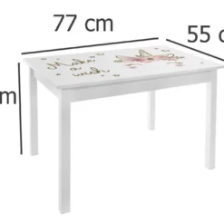 Dieser äußerst niedliche Kindertisch ist perfekt auf die Bedürfnisse der Kleinen abgestimmt. Die Tischplatte hat eine große Oberfläche und die Höhe ist an die Körpergröße der Kleinsten angepasst. Sie können damit bequem spielen, essen und malen und sich gleichzeitig an seinem märchenhaften Aussehen erfreuen. Der Tisch ist mit einem schönen Druck verziert, der ein Einhorn darstellt. Dank dessen ist es perfekt für jedes Mädchen und wird die Raumdekoration und die alltäglichen Spiele abwechslungsreicher gestalten.