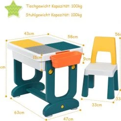 Möchten Sie Ihren Kindern einen perfekten Ort zum Spielen und Lernen bieten? Unser exzellentes Kinder-Aktivitäts-Tischset ist genau die richtige Wahl für Ihre Kinder über 3 Jahre! Das doppelseitige Brett ist mit einer glatten Seite zum Lernen, Zeichnen oder Essen. Während die andere Seite mit Blöcken kompatibel ist, inspiriert sie die Kreativität Ihrer Kinder und fördert ihre praktischen Fähigkeiten! Darüber hinaus werden für die Montage keine Werkzeuge benötigt. Es ist auch leicht in Minuten auseinander zu nehmen. Daher können Ihre kleinen Kinder alle Teile und Notwendigkeiten in den Koffer stecken und ihn problemlos mit dem Griff überall hin mitnehmen!
