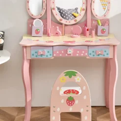 【Multifunktionales 2 in 1 Set】 Ihre Kinder können sich an diesem Tisch schminken und Accessoires anprobieren. Wenn Sie den Spiegel abnehmen, kann er auch als Schreibtisch verwendet werden.