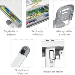 - Lieferumfang: 1 x Kinderschreibtisch;1 x Stuhl