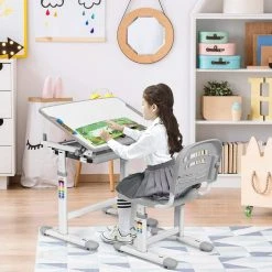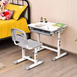 Gerade bei Kindern bzw. Jugendlichen ist die Auswahl des passenden Schreibtisches unter ergonomischen Gesichtspunkten entscheidend. Unser praktscher Kinderschreibtisch gibt es drei schöne Farbe Grau, Blau und Rosa. Der höhenverstellbar Tisch ist perfekt für wachsende Kinder geeignet. Die Arbeitsfläche ist neigbar und ideal für verschiedene Lernaktivitäten. Unter der Tischplatte ist ein Schubfach integriert, hier finden Stifte und Kleinigkeiten einen guten Platz für Ordnung im Kinderzimmer.