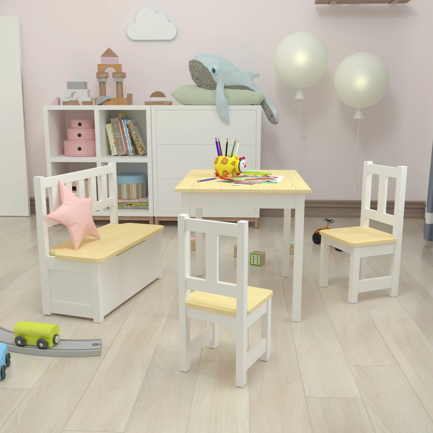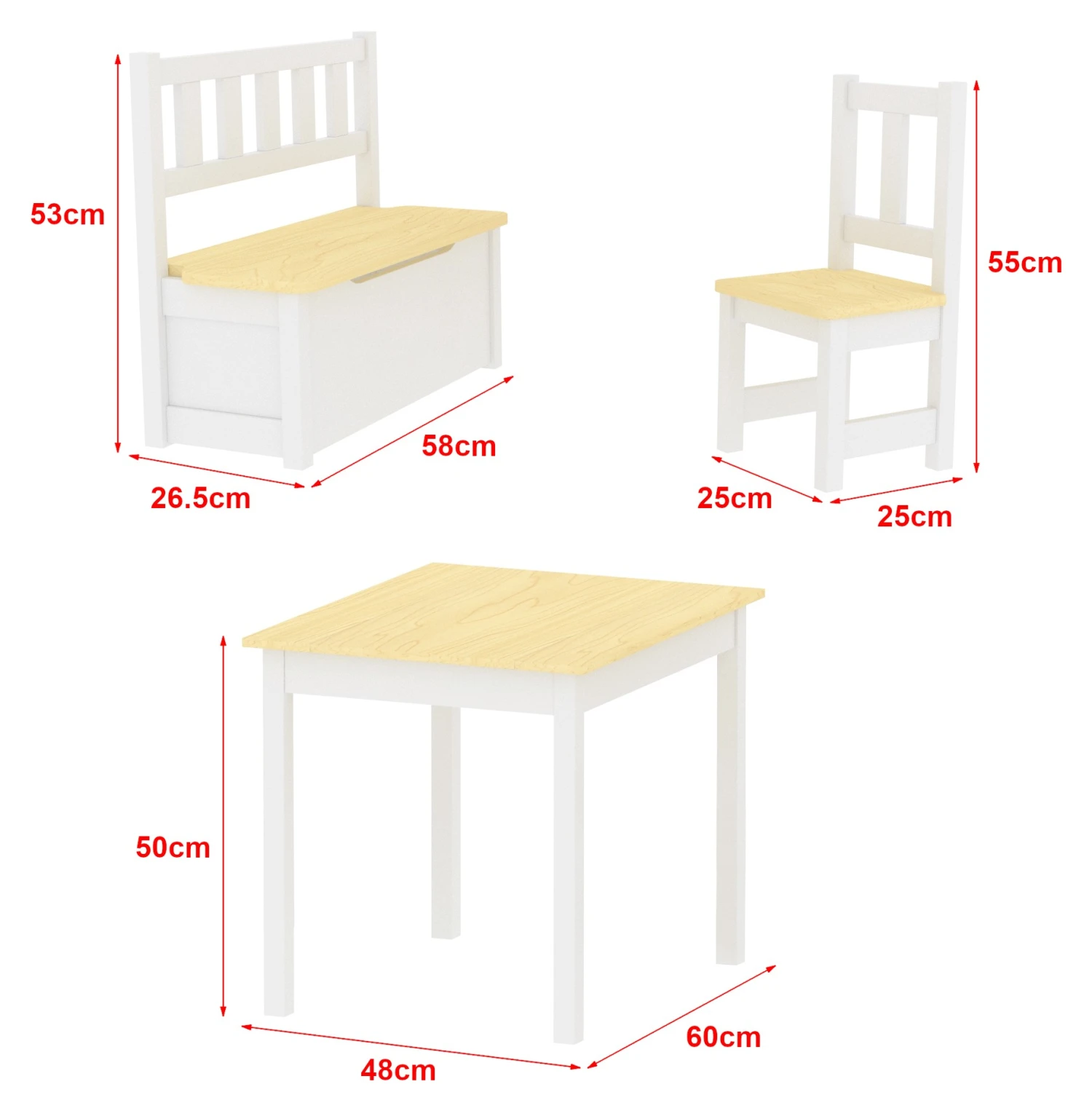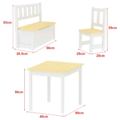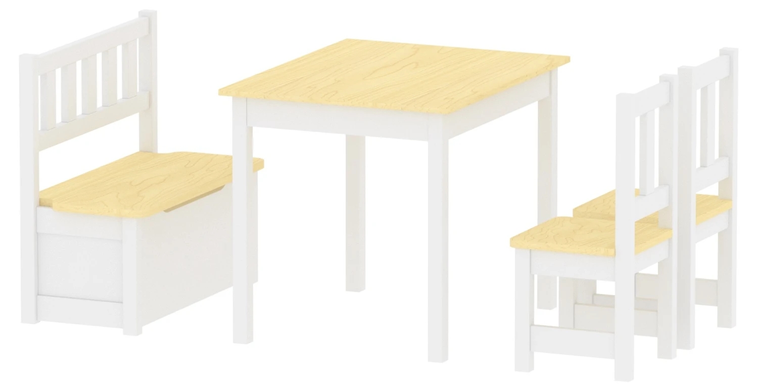 - Lieferumfang: 1 x Tisch – 2 x Stuhl – 1 x Aufklappbare Sitzbank – 1 x Aufbauanleitung