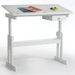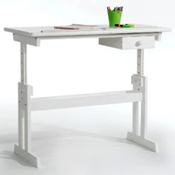 wächst mit Ihrem Kind und ist in der Farbe weiß erhältlich. Durch die Neigungs-, sowie Höhenverstellbarkeit ist ein optimaler Sitzkomfort gewährleistet und das Arbeiten an diesem Schreibtisch wird durch viele kleine Extras wie Stiftablage und kleiner Schublade zur Leichtigkeit.