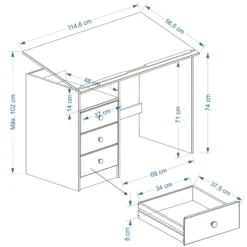 ist aus massivem Kiefernholz gefertigt und mit einer neigungsverstellbaren Tischplatte ausgestattet. Mit dem Ablagefach und den 3 Schubladen, haben Ihre Kinder genügend Platz Schreibutensilien und Schulhefte zu verstauen. Richten Sie die Kinderzimmer mit unserem praktischen Schülerschreibtisch ein. Der Jugendschreibtisch fügt sich leicht in den Einrichtungsstil ein.