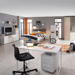- Lieferumfang: Kinderschreibtisch OLIVA inklusive 2 Schubladen und Anschlagleiste, ohne Dekoration