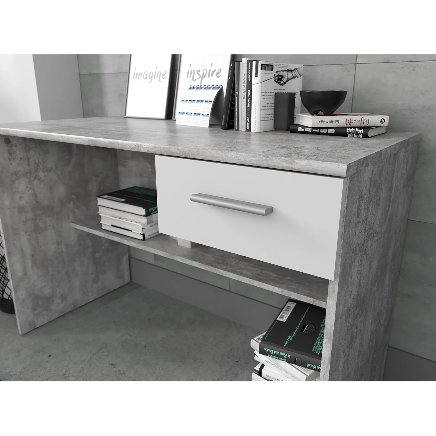 - Lieferumfang: Schreibtisch ohne Dekoration